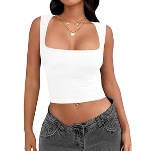 Square Neck Tops for Women, Sleeveless Crop Tops for Women Sexy Cropped Tank Tops, Going Out Tops 2024 Summer Trendy Clothes