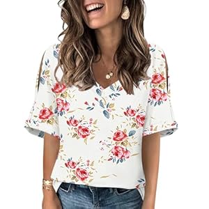 DouBCQ Womens Plus Size Blouse Deep V Neck Tshirt Loose Cold Shoulder Basic Tunic Tops