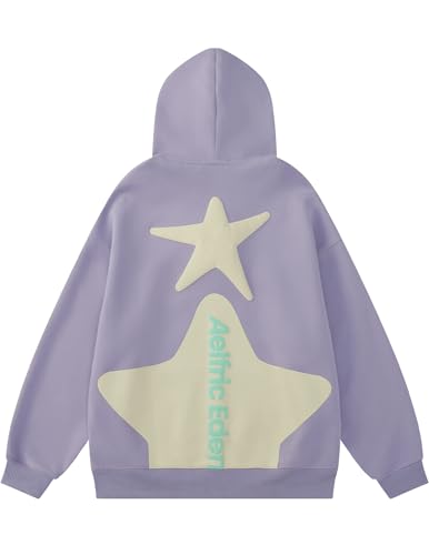 Aelfric Eden Star Graphic Hoodies Purple Print Hoodie Unisex Oversized Hooded Sweatshirt Long Sleeve Pocket Pullover