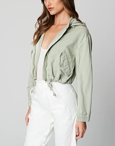 [BLANKNYC] womens Twill Hooded Shirt Jacket With Pockets and Drawstring Finish, Stylish Coat & Designer Clothing