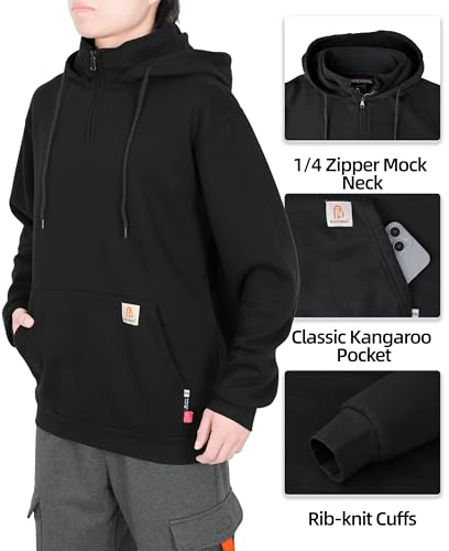 BOCOMAL FR Hoodies 1/4 Zipper Pullover Cotton Fleece Hooded Sweatshirts