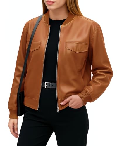Brown Women Faux Jacket Leather Cropped Bomber Coat 2025 Fall Fashion Casual Outfit Vacation Trave Festival Going Out Cute Holiday Dressy European Italy College Paris Brunch Clothes