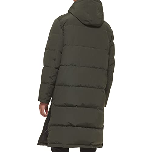 FUNCTIONALITY: Faux down fill insulation, center front placket with hidden zipper closure, attached hood with adjustable draw cords. STYLISH FEATURES: DKNY rubber logo patch at wearer’s left sleeve, two lower pockets with exposed zipper. WATER RESISTANT: The outer shell consists of arctic cloth fabric coated in polyurethane creating a water resistant barrier for maximum protection and warmth.
