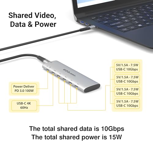 Four USB-C Gen 2 10Gbs Ports (The total shared data is 10Gbps, when using all ports simultaneously)