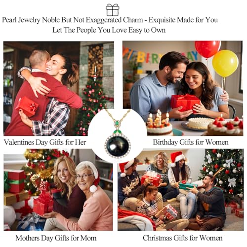 Gifts for Women- Tahitian-Black-Pearl-Necklace for Women, 12-13mm Real South Sea Pearls Pendant Sterling Silver Plated 18K Gold With Urquoise- Christmas Mothers Day Valentine’s Day Jewelry