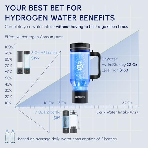 Hydrogen Water Bottle – 3X More Hydrogen Concentration – 32oz Hydrogen Water Bottle Generator – Portable Hydrogen Water Machine | Certified H2 Generator – HydroStanley Black