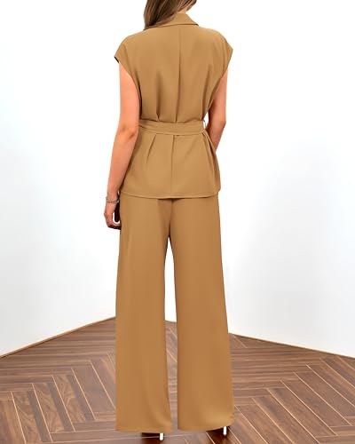 PRETTYGARDEN Women’s Summer 2 Piece Outfits 2025 Cap Sleeve V Neck Blazer Vest Wide Leg Pant Sets Office Work Clothes
