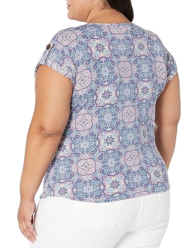 Star Vixen Womens Women’s Roll Tap Sleeve Dollman Body Keyhole Neckline TopBlouse