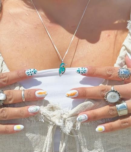 Turquoise with Amber Bird Pendant Necklace, Sterling Silver Genuine Boho Western Jewelry Gift for Birthday