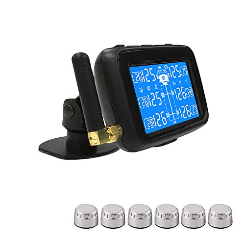 U901T Tire Pressure Monitoring System for Trucks with 6pcs External Sensors Real Time Monitoring Pressure and Temperature Vehicle Battery Testing Large LCD Display