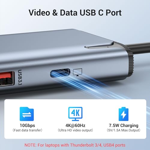 【Intel JHL8140 Multiport USB C HUB 】 USB C to USB C hub equipped Intel JHL8140 Chip,a USB C video out port has three functions:: 4K@60Hz video output + 10Gbps data transfer + 7.5W charging.So it’s not as bulky as other products and can be easier and faster for you to use (For laptops equipped with a USB-C port and supporting Thunderbolt 3/4 or USB4,and the monitor must support USB C Alt mode).