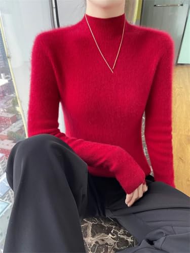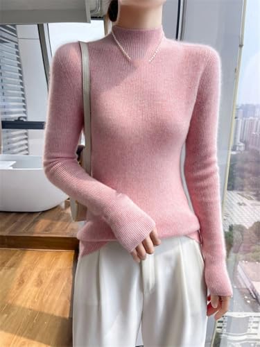 Women’s Cashmere Slim Sweater Half High Collar Pullovers Winter Basic Cashmere Warm Clothing Tops