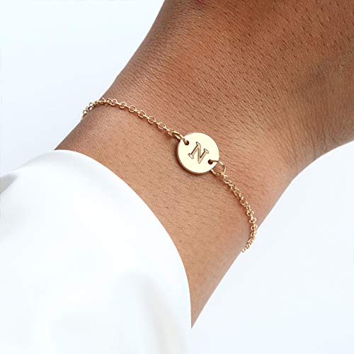 YANCHUN Initial Bracelet for Women Adjustable Round Disc Alphabet Letters Bracelet for Women