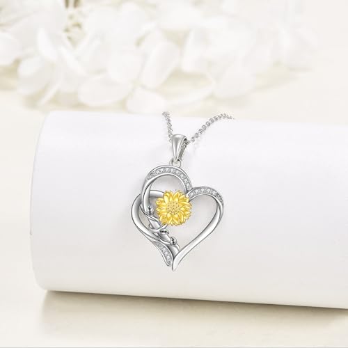 ZBA Natural Diamond Sunflower Heart Necklace for Women 18K Gold Plated Sterling Silver Sunflower Heart Pendant Necklace Jewelry Mothers Day Gifts for Mom(Color FG Clarity SI2SI3)