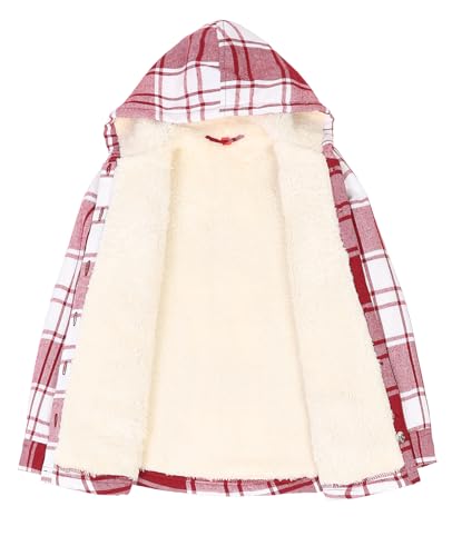 ZENTHACE Girls Hooded Plaid Flannel Shirt Jacket with Hand Pockets,Sherpa Lined Button Down Flannel Shacket Jacket